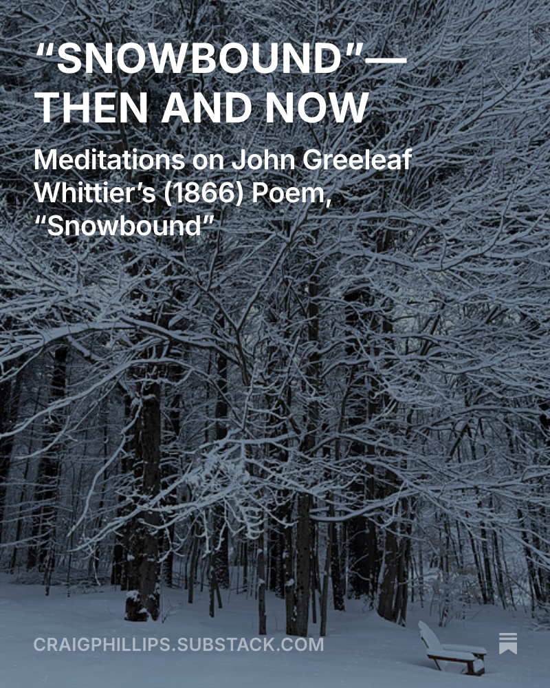 A Nor’easter is tracking up the Eastern Seaboard this morning, and the snow-covered birch trees outside my window in New Hampshire sent me back to John Greenleaf Whittier’s great 1866 poem ‘Snow-Bound’, and to the question of what we lose when no storm can truly cut us off anymore. Modern life is specifically engineered to prevent the conditions that produced some of the best writing in American literature.