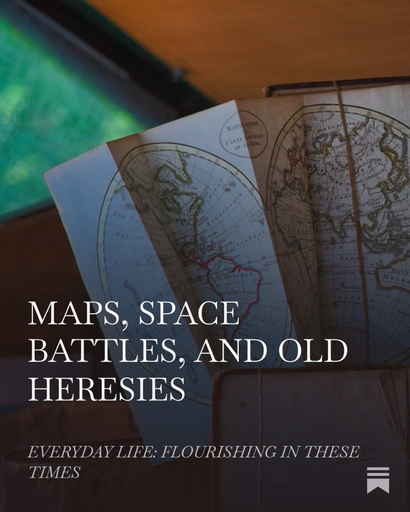 This week my reading moved from a 1677 woodcut map of New England to a 1606 copper engraved map of the religions of the world, to a seventeenth-century catalogue of world religions and Christian heresies, to a sprawling space opera set across the solar system. A rare book arrived in the mail, a public talk prompted uncomfortable questions, and the common thread running through all of it turned out to be the same: people trying to draw the world as they wished it to be, and the significant silences their clean lines depend on.