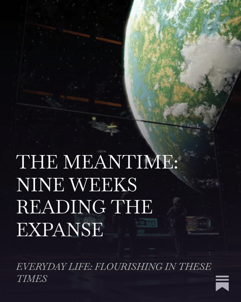 Five thousand pages. Nine novels. Nine weeks. What I found in James S. A. Corey’s The Expanse wasn’t just great science fiction — it was a meditation on decency, mortality, and what we do with the time we have. Because the meantime, it turns out, is the only time there is.